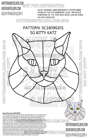 © Francis Elder II. Pattern may be reproduced in stained/art glass for or not for profit and may be incorporated into other designs as well, providing credit is given to the copyright holder (Francis Elder II, PatternsByElder.com). All watermarks, text, sponsorship mentions and copyright information must remain on the pattern, no alterations in the actual design of the pattern may be made. Pattern may be copied, reduced and enlarged by the purchaser of this pattern and permission is given to third party services to provide copy, reduction and enlargement services to the owner of this pattern for those purposes. The pattern itself may not be redistributed in any form or resold other than as outlined without prior written consent by the copyright holder. All US copyright and international copyright rights are reserved by the copyright owner. Stained glass studios that are teaching studios as well as art departments in public schools and private schools, once they have purchased a copy of the pattern, may duplicate and distribute the pattern to their students at no additional charge, providing watermarks, text, sponsorship mentions and copyright information remains on patterns and will not provide digital copies and links to such copies that could otherwise be downloaded by non-students, in addition they may not charge their students for these copies.